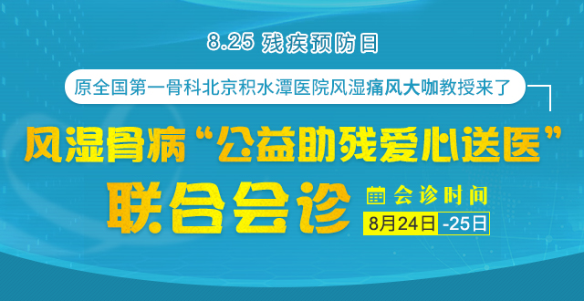 在8月25日全国第三个“残疾预防日”到来之际,为加强树立全民预防残疾观念,加快促进残疾预防事业发展,同时也是为了认真贯彻落实上级部门的防残助残政策通知,组织并开展好“残疾预防日”科普宣教工作,贵阳强直医院院办研究决定,启动“风湿骨病公益助残爱心送医普查会诊”活动,呼吁全社会群体重视残疾预防,关注自身骨关节健康,特别是高度警惕关节疼痛现象,做好“及时发现,及早重视,即可规范治疗”三点,可降低致残风险。