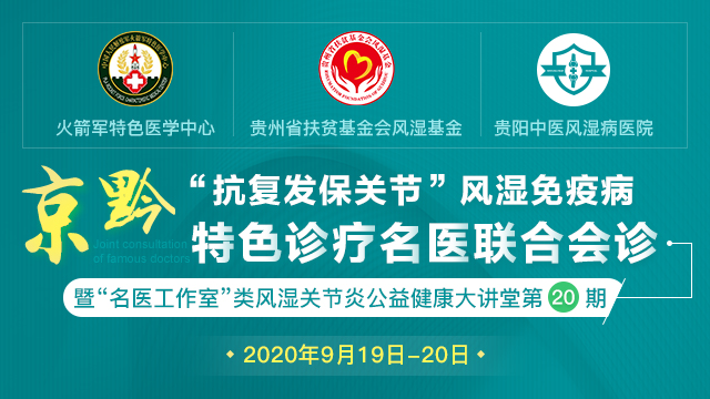 类风湿关节炎该如何进行达标治疗,医生在治疗时该如何规范用药,患者在治疗的过程中又要如何配合呢?9月19日,贵阳强直医院将特邀北京火箭军特色医学中心内分泌风湿免疫科副主任医师——高青教授莅临我院,入驻我院名医工作室,开展类风湿关节炎公益健康大讲堂第20期——《类风湿规范用药及达标治疗》健康知识讲座,并联合贵阳本地专家开展“京黔名医”会诊,旨在提高风湿疾病患者治疗达标率,帮助更多患者早日摆脱疾病痛苦。'