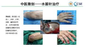 不爱吃海鲜,也很少喝酒,基本上不喝碳酸饮料,父母都没有痛风病史,那小伙子的痛风由何而来?交流会现场来了一位痛风患者,朱红梅院长向大家展示了这位患者手术的一些图片,其中有一张就是小伙子在做水筋针治疗时从关节腔里挤出来的像牙膏一样的液状痛风石。