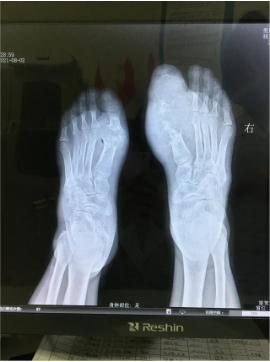 DR影像显示双足跖趾关节骨质严重被破坏