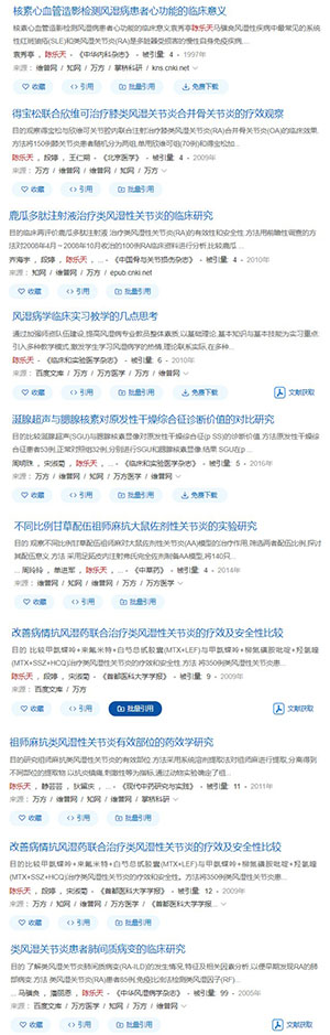 在多种国家级杂志发表多篇学术论文:< The New Use of an Ancient Remedy: A Double-Blinded Randomized Study on the Treatment of Rheumatoid Arthritis.>;《不同改善病情抗风湿药联合治疗类风湿性关节炎的疗效及安全性比较》;《得宝松联合欣维可治疗膝类风湿关节炎和并骨关节炎的疗效观察》;《类风湿关节炎伴发反复急性心肌梗死1例及文献复习》;《风湿病学临床实习教学的几点思考》;《实用风湿免疫科查房医嘱手册》等。