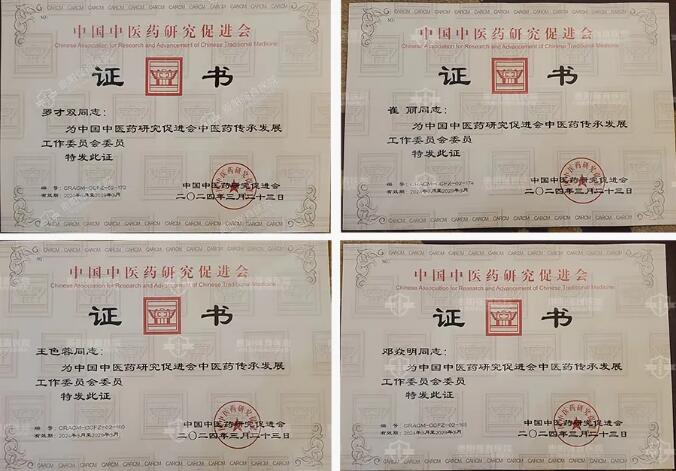 与此同时,我院罗才双主任、王色蓉主任、邓焱明主任、崔丽主任共同当选为中国中医药研究促进会中医药传承发展工作委员会委员。