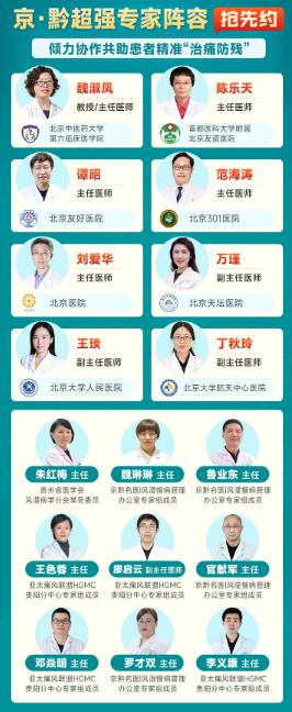 本次活动由北京中医药大学第六临床医学院魏淑凤教授、北京友谊医院陈乐天主任医师、卫健委直属北京友好医院谭昭主任医师等北京8大名院组成的专家组将携手院“名医工作室”成员,重点针对关节疼痛反复、用药无效、尿酸难降、活动受限等患者,共同开展“多对一”的线上线下联动会诊,制定个体规范化诊治方案。
