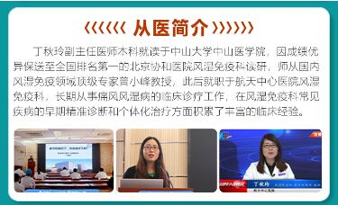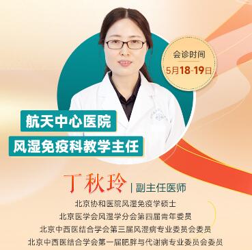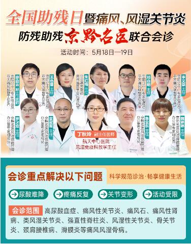 作为本次助残日公益活动倡议支持者之一的『航天中心医院』风湿免疫科教学主任——丁秋玲副主任医师将莅临我院开展为期两天(5月18-19日)的专场会诊,届时与院多学科医生团队共同评估痛风风湿病患者病情进展程度和可能存在的致残风险,联合制定个体化“治痛防残”诊疗方案。