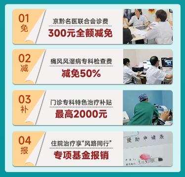 考虑到痛风风湿病是慢性病,病程长、易反复,有的患者在漫长的求医过程中无力承担治疗费而放弃治疗,导致疾病进展最终走向残疾。为减轻患者看病贵问题,活动期间,到院患者可申领以下就医补贴。