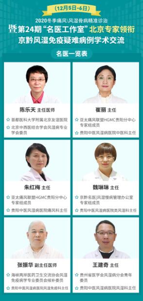 为了让一部分痛风\风湿骨病患者能够得到佳的个体化治疗方案,我院与首都医科大学附属北京友谊医院陈乐天主任医师建立学术交流及临床诊疗协作关系,并将于12月5日-6日,为广大贵州痛风\风湿骨病患者提供从保健、咨询、就诊、体检、健康档案等方面开启一系列绿色通道服务。(提前预约,到院后免专家费,原需300元)
